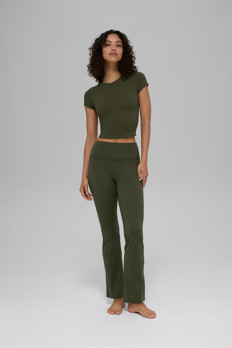 The ALO Softsculpt High-Waist 7/8 Bootcut Legging takes studio-to-street style to a new level with its flattering flare and sleek silhouette. Made from our signature medium-compression fabric, it offers gentle sculpting with a naturally breathable feel and a subtle sheen that elevates any look. Pair it with your favorite ALO Softsculpt bra or shirt for an easy and effortless vibe.