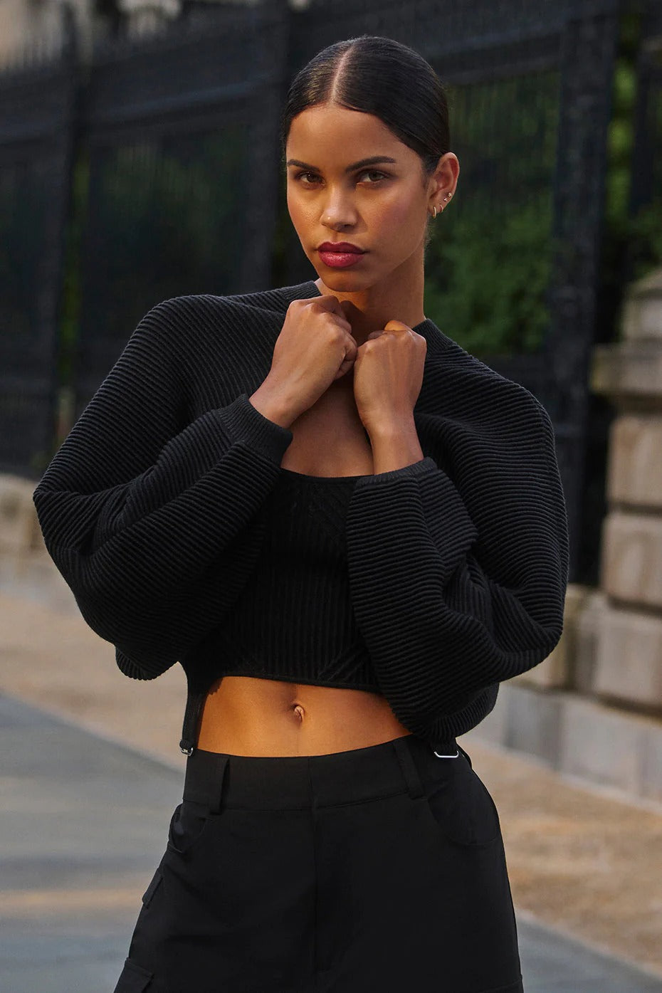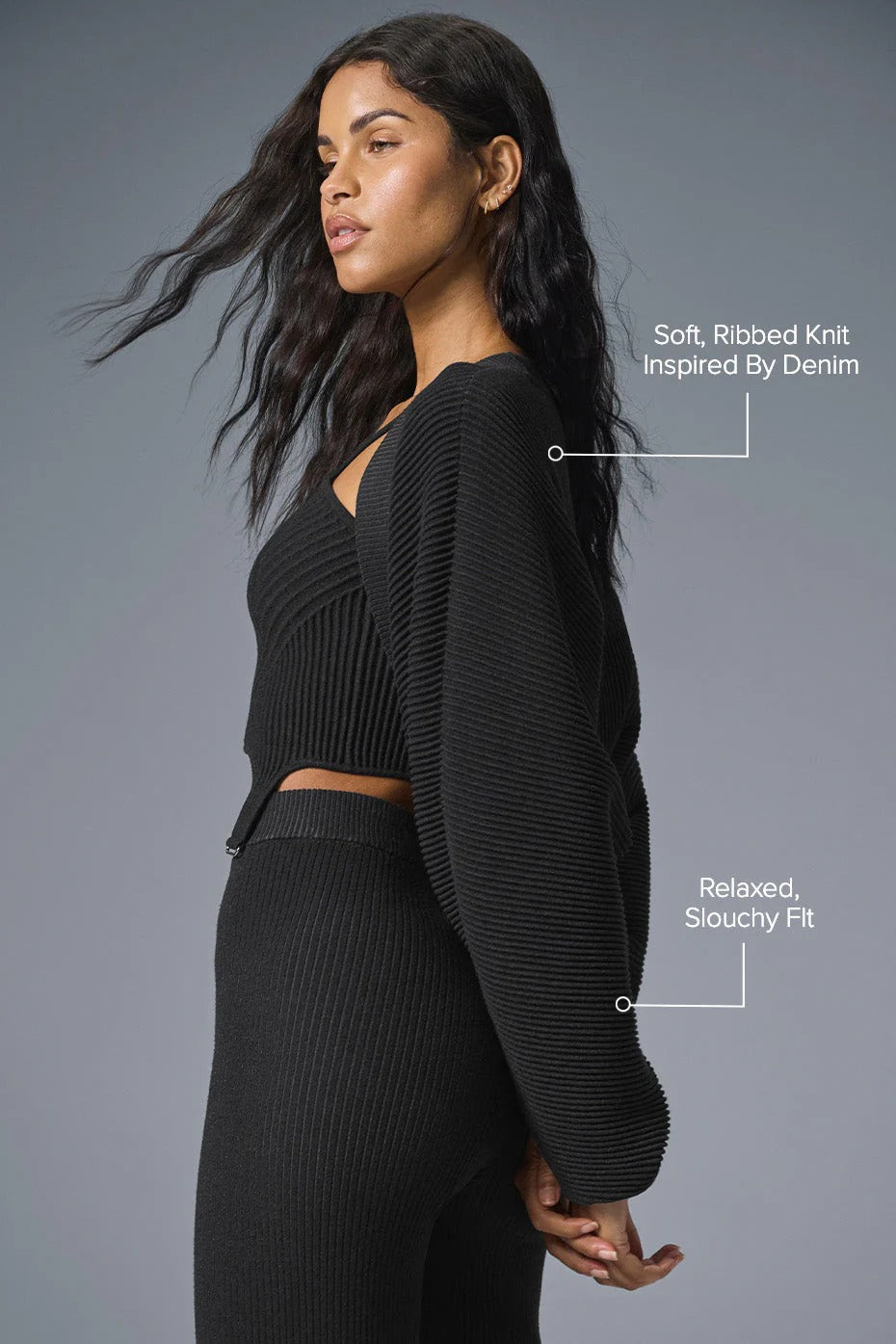 Inspired by the nuanced texture of denim, this shawl is fabricated in a soft, substantial ribbed knit for an elevated touch. Designed with outsized shoulders, abundant volume, and the perfect drape. Style it over your favorite sports bra when you’re coming from the studio, or your go-to tank when you’re hitting the streets.