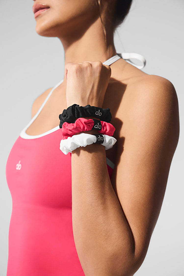 Mini but mighty, these statement scrunchies help you stay focused and fashionable. Designed in our fave Airlift fabric and colors to match from head to toe. The Alo graphic detailing makes them perfect to work from studio to street.