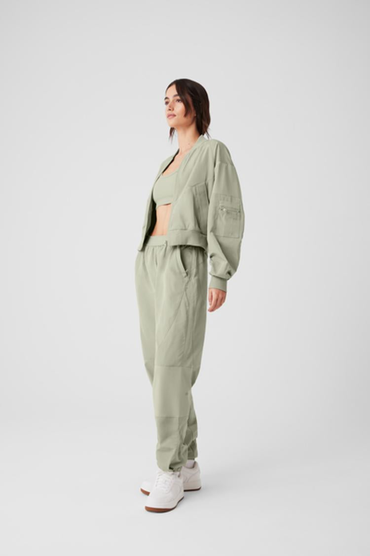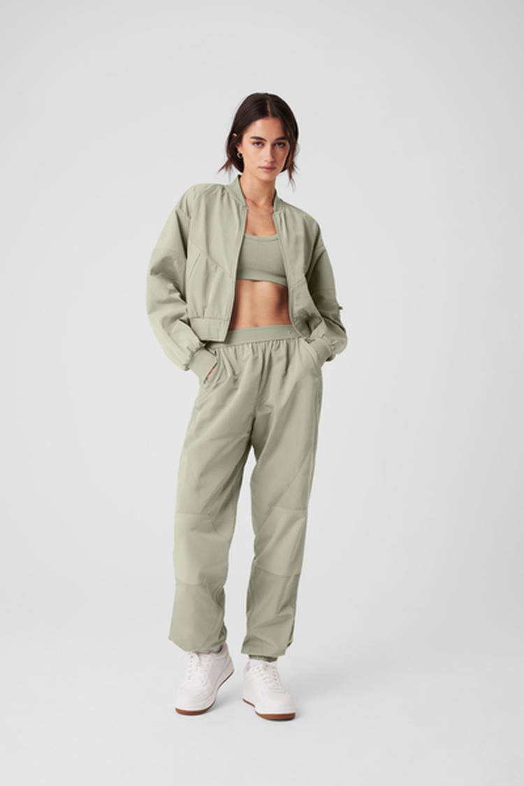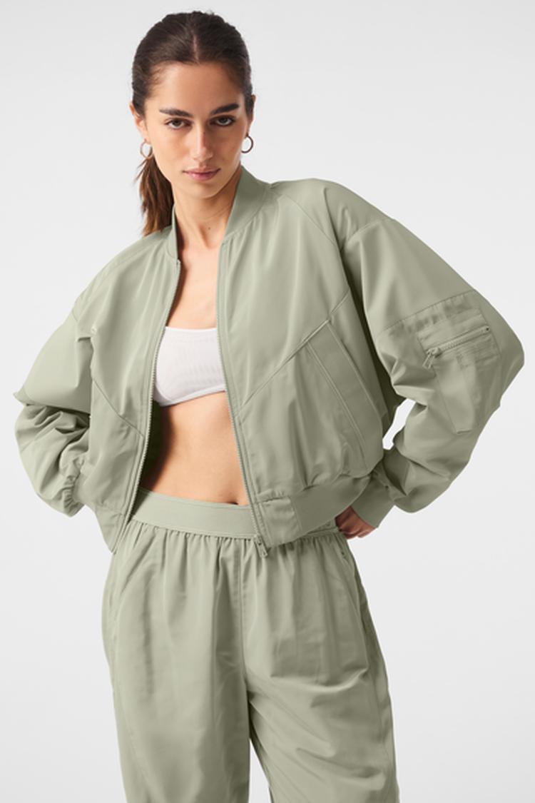 Done in a soft, swishy fabric with subtly contrasting panels, this bomber jacket is, well… the bomb. It has dropped shoulders, a full-zip front and ribbing at the cuffs and hem. Details like a cargo pocket on the arm and Alo straps on the pockets complete the sporty vibe. Pair it with a sports bra, the matching joggers and sneakers for an easy and effortlessly cool outfit.