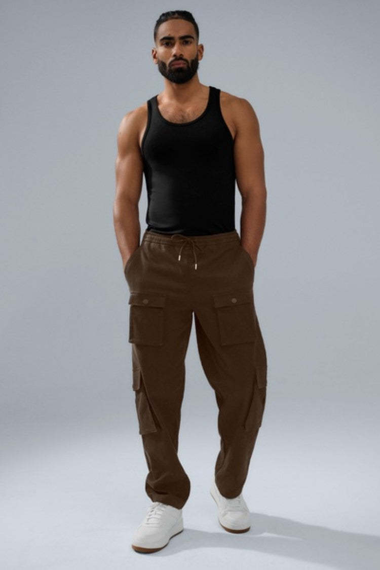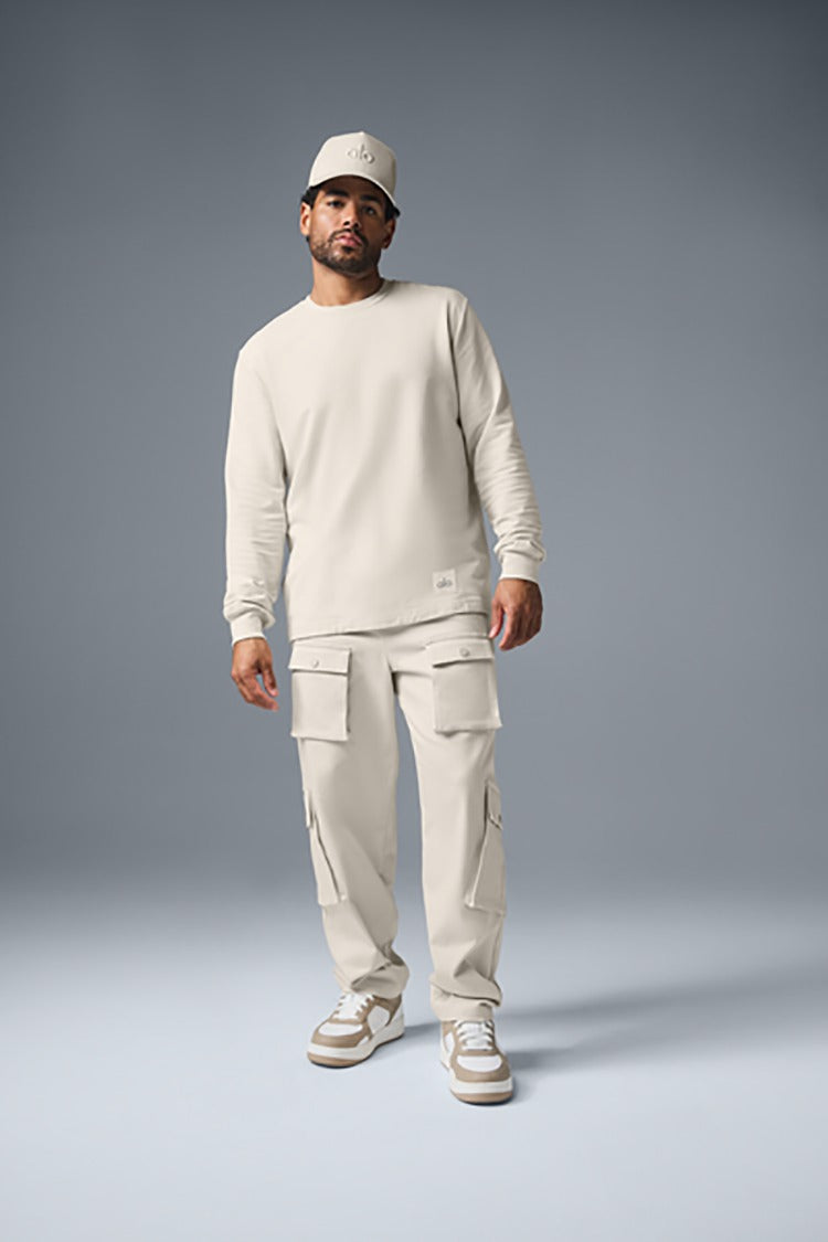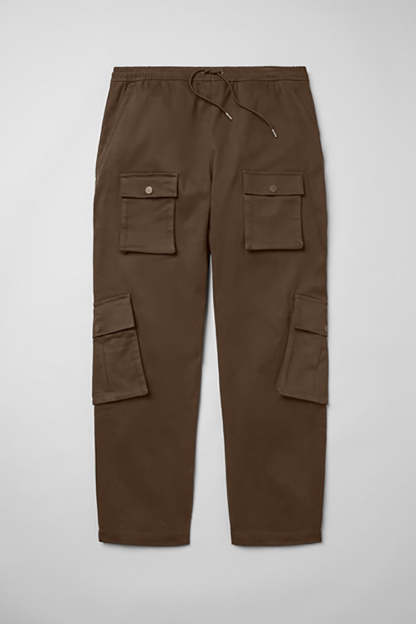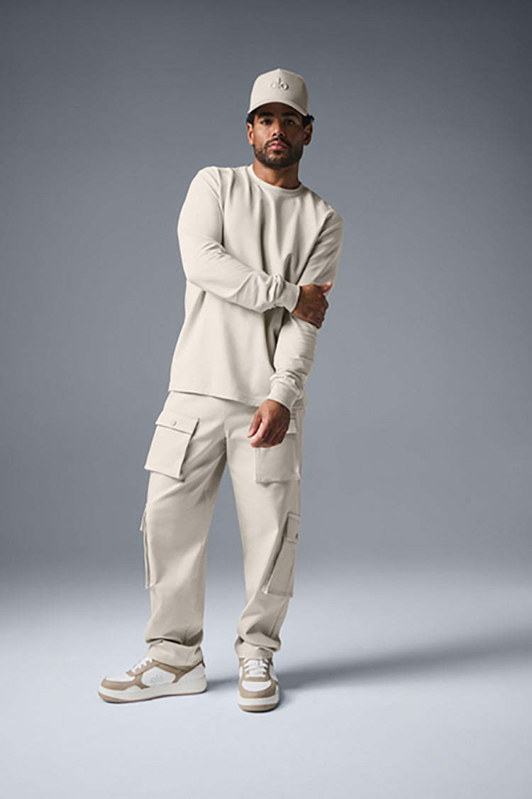 A fresh riff on Y2K style, these pants are made from soft, sturdy, stretch-infused cotton twill. They have four cargo pockets—peep how the lower pockets are slightly offset—with snap closures for stashing spare change or parking stubs. The roomy, straight-leg silhouette has an easy elastic waist with a drawstring. Top it all off with a hoodie and Alo sneakers.