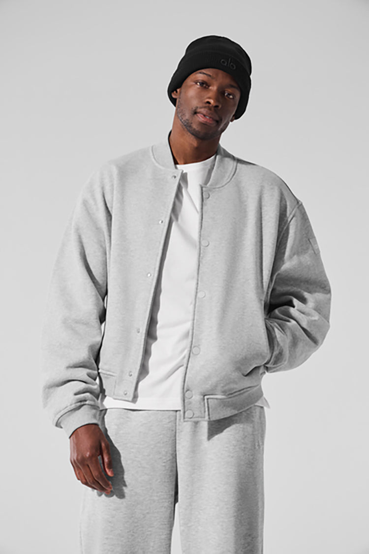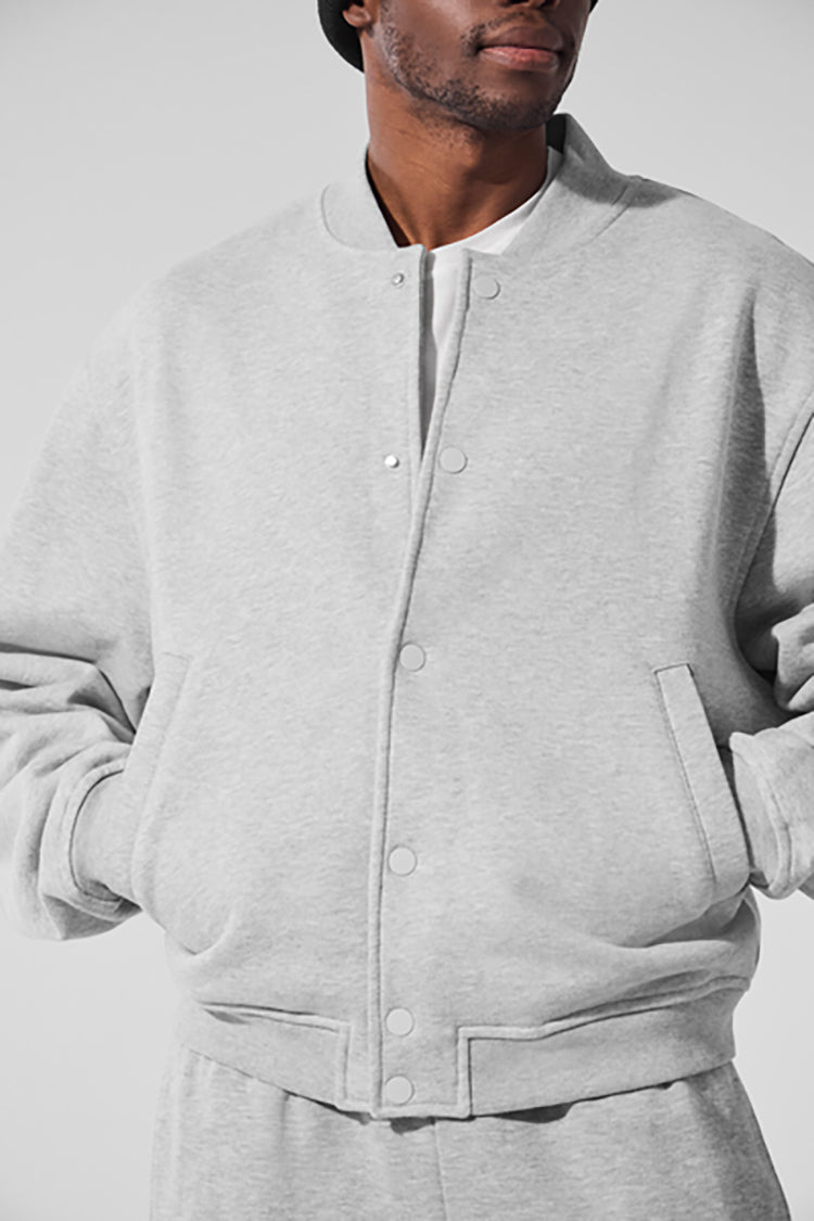 Add a new game-changing layer to your rotation. The Renown Varsity Jacket is made from comfy, heavyweight French terry with drop shoulders, a button front closure, and a smooth look and feel that nails the cool, street-ready vibe. Front slip pockets are handy for storing keys, phone and small essentials on the go.