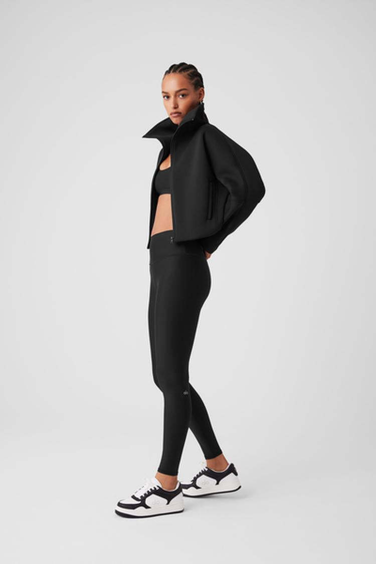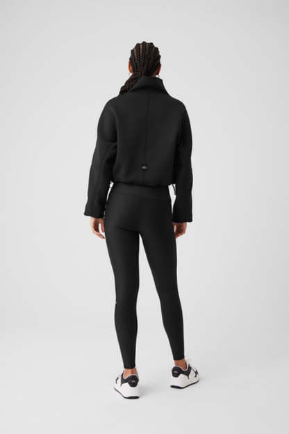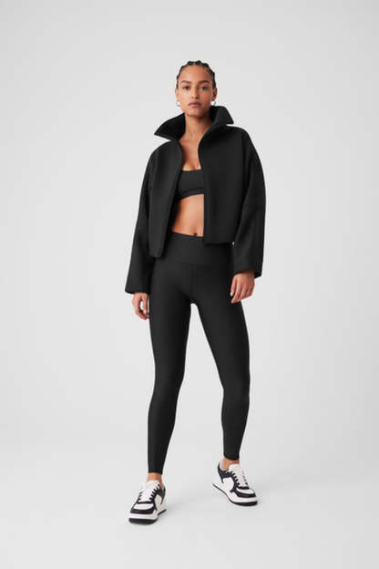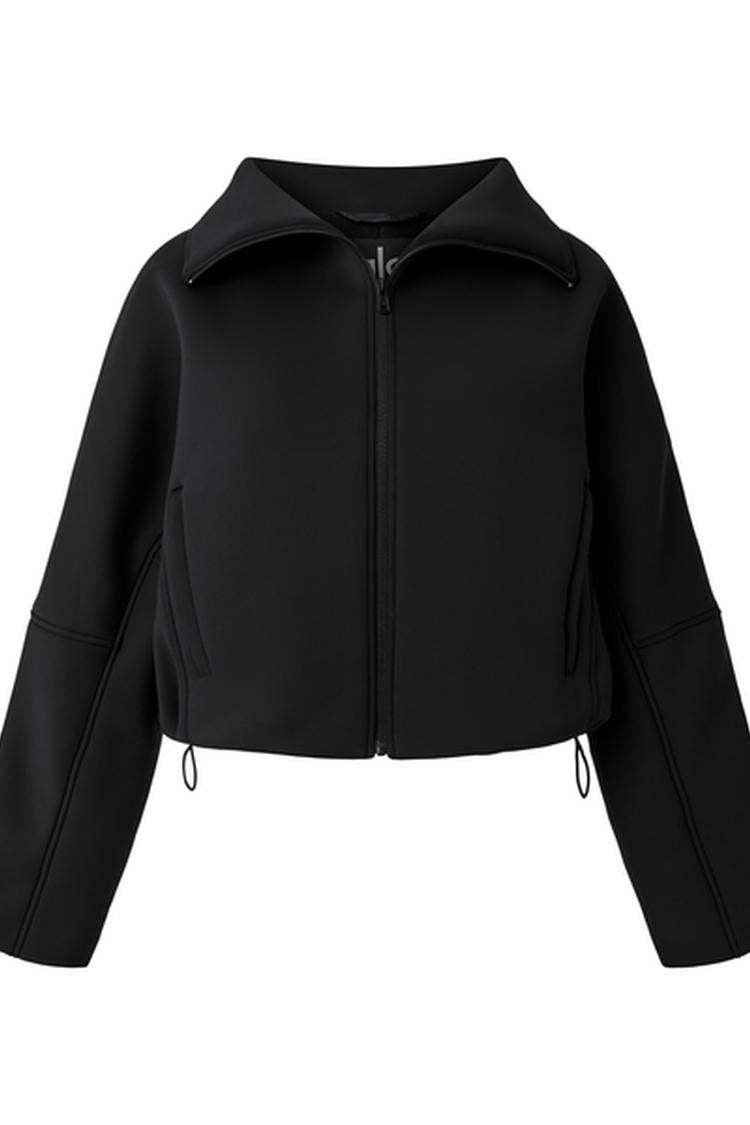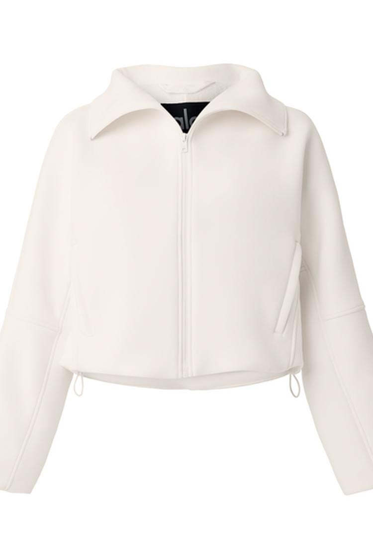 The Technical Form gives your go-to jacket a run for its money. It’s made from our newest scuba fabric—with a sleek, springy, surprisingly lightweight texture—and features a wide foldover collar, a fleecy interior, and seamed details on each arm. The silhouette is a bit boxy, with bottom bungees that cinch the waist for a more fitted look. Zip it up over a matching set for the perfect pre- or post-workout look.