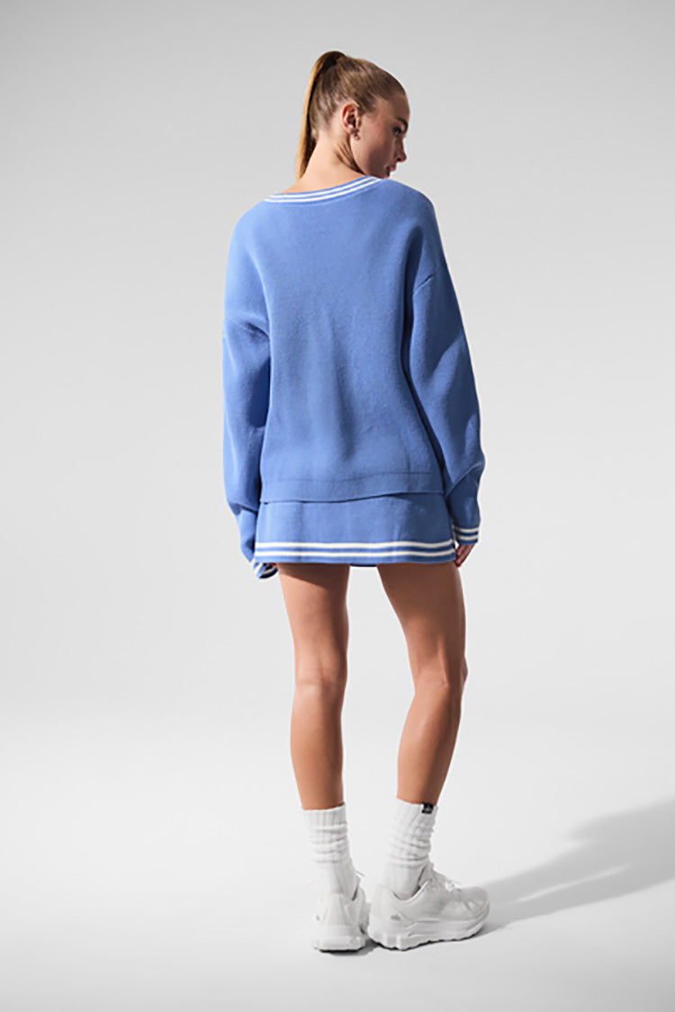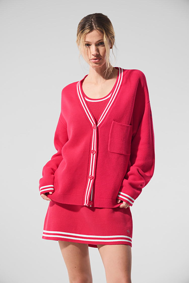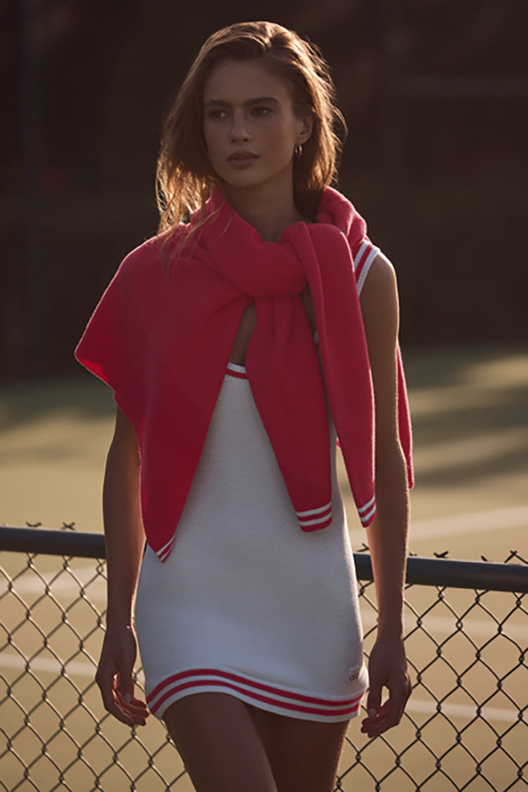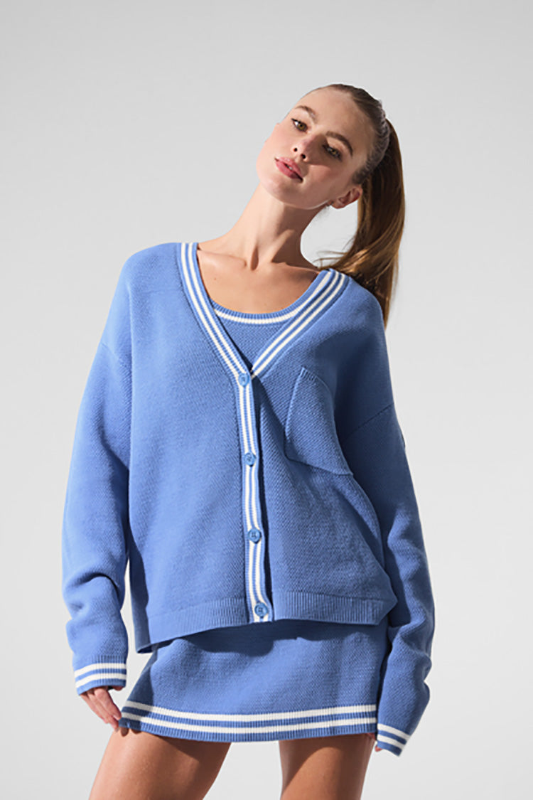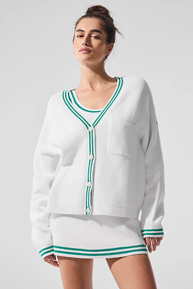 This is not your grandpa’s cardigan: Cut to fit the female form with a roomy drape, it has dropped shoulders, a four-button front, ribbed cuffs, and a hip-length hem. Striped trim gives it a classic yet cute look. And the best part? There's a whole Tennis Club capsule collection to style it with.